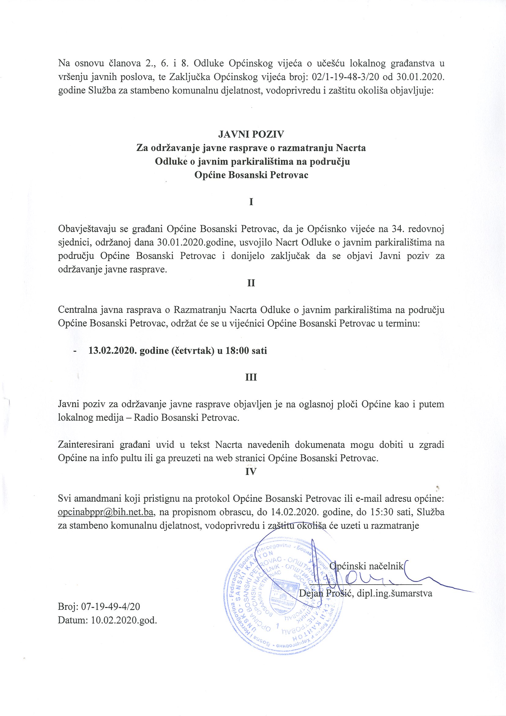 Javni poziv za održavanje javne rasprave Nacrt Odluke o javnim parkiralištima na području Općine Bosanski Petrovac