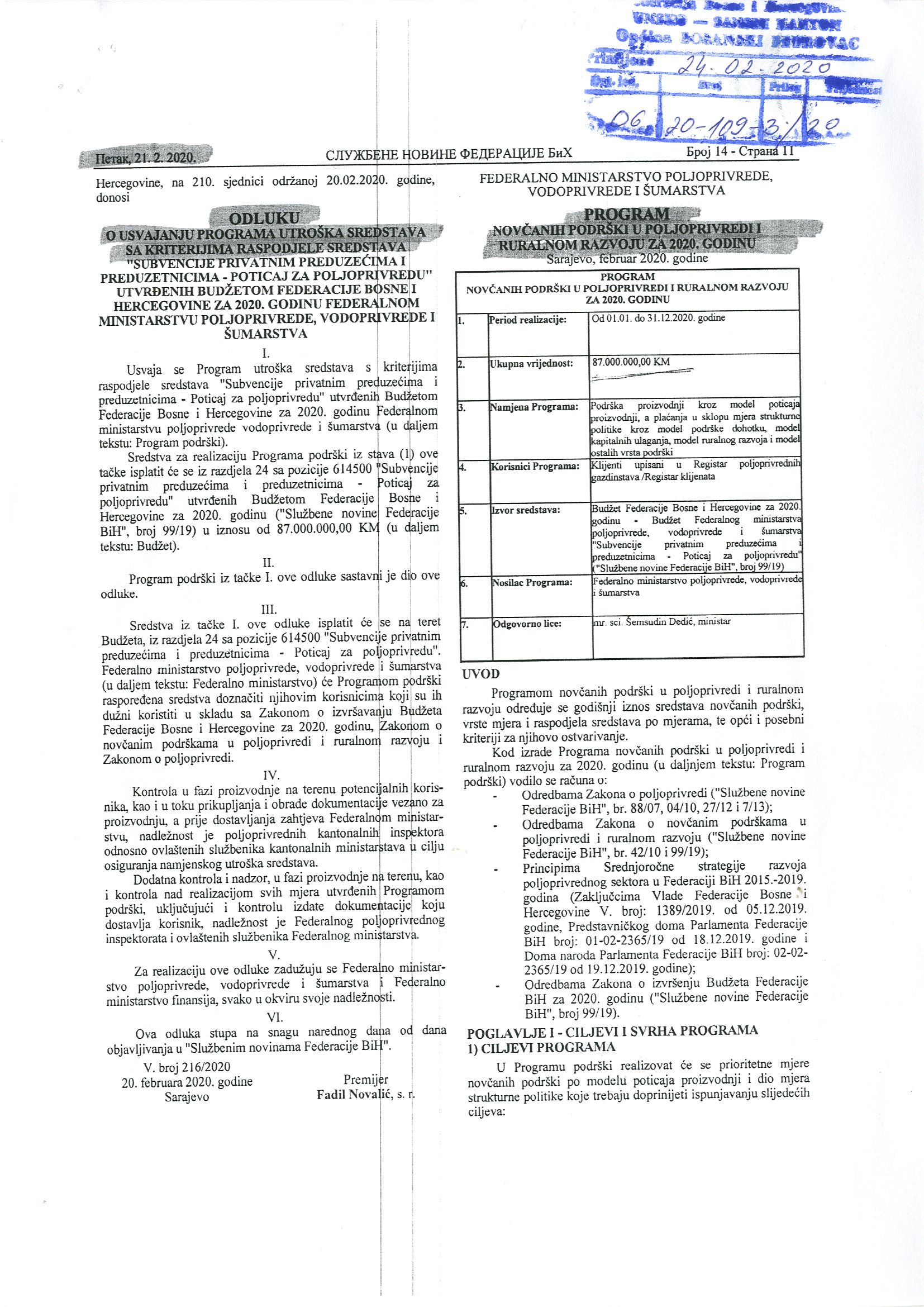 Program novčanih podrški u poljoprivredi i ruralnom razvoju