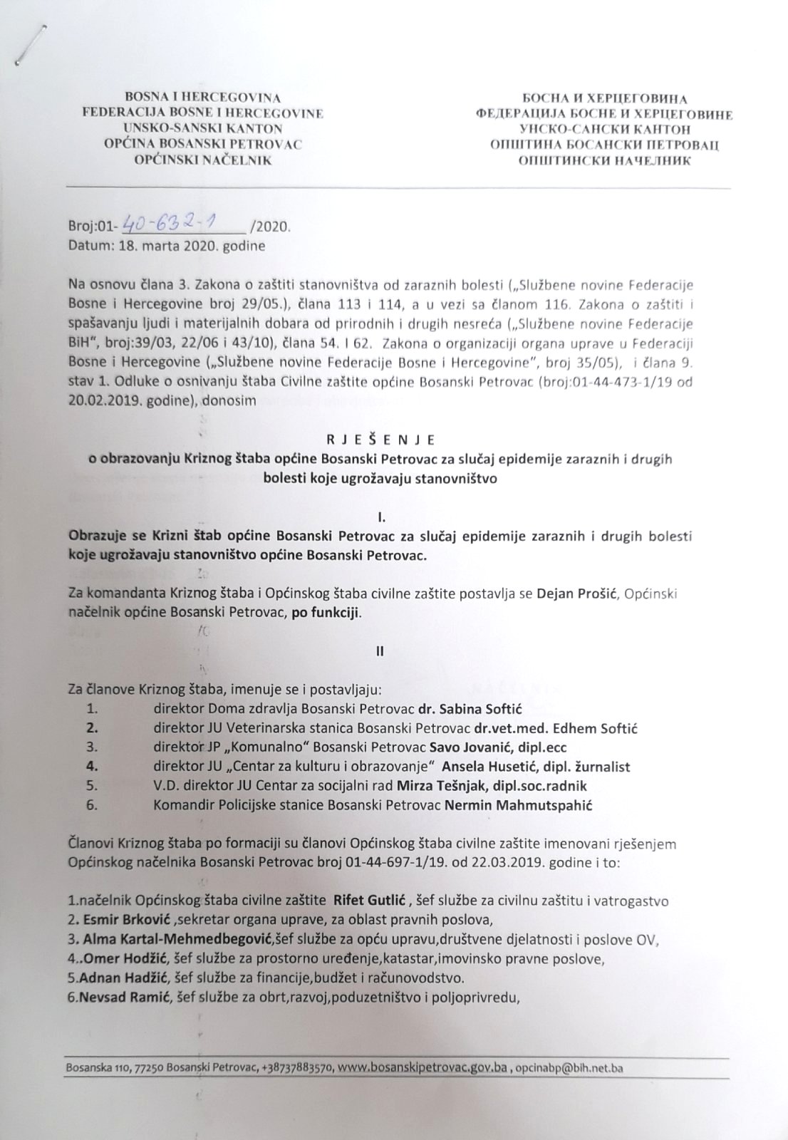 Formiran krizni štab Općine Bosanski Petrovac