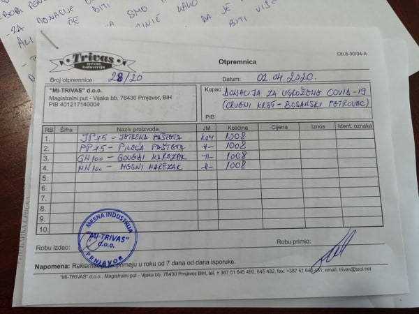 Nakon što je od strane Opštinskog načelnika, Dejana Prošića, upućen Poziv za pomoć svim zaninteresovanim donatorima, kako bi Opština Bosanski Petrovac lakše podnijela tešku situaciju prouzrokovanu koronavirusom, pored Mesne industrije “Tulumović”, svoj doprinos je dala i MI “Trivas” iz Prnjavora.