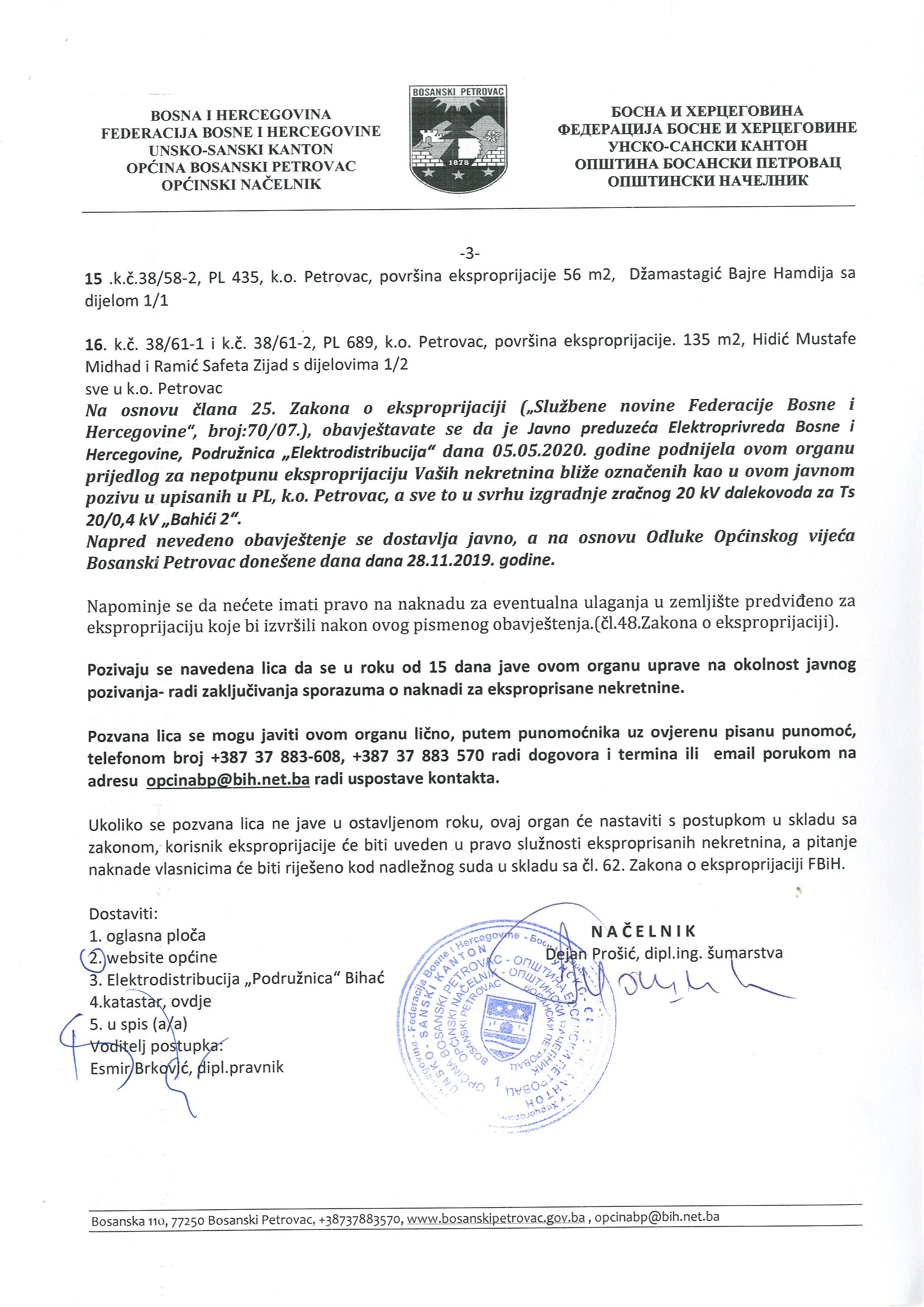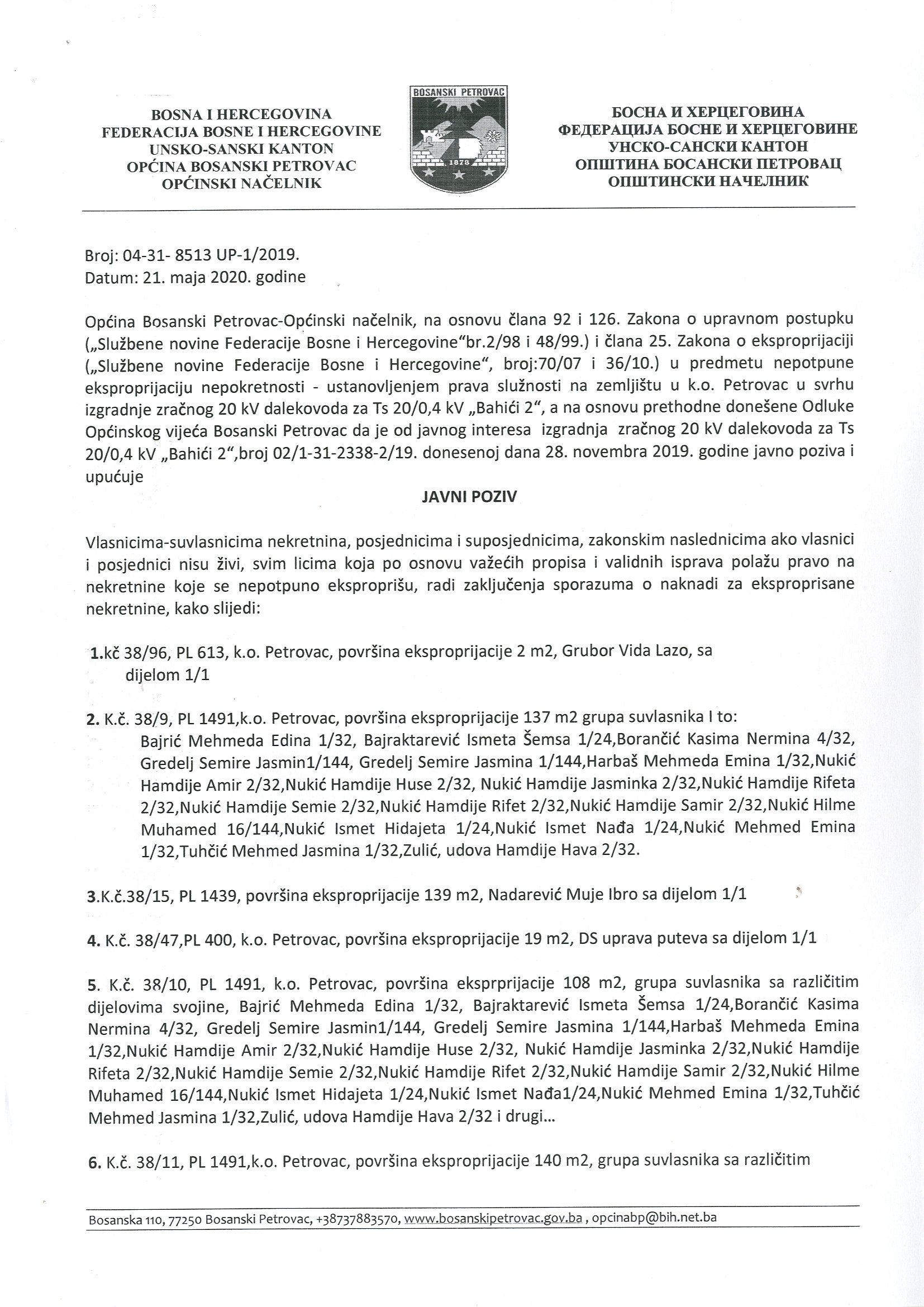 Javni poziv o naknadi za ekspropisane nekretnine