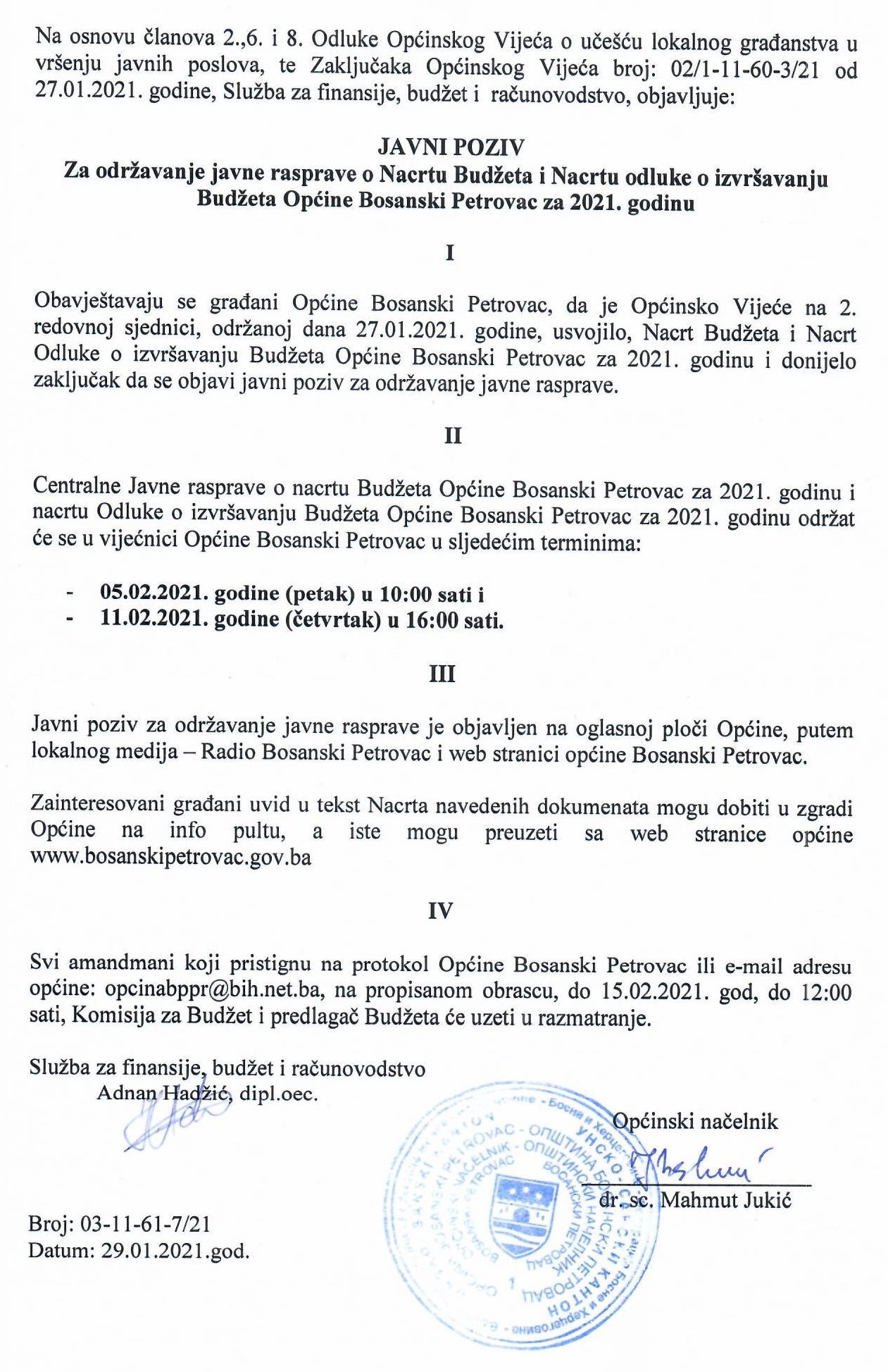 ODLUKA O IZVRŠAVANJU BUDŽETA OPĆINE BOSANSKI PETROVAC ZA 2021. GODINU
