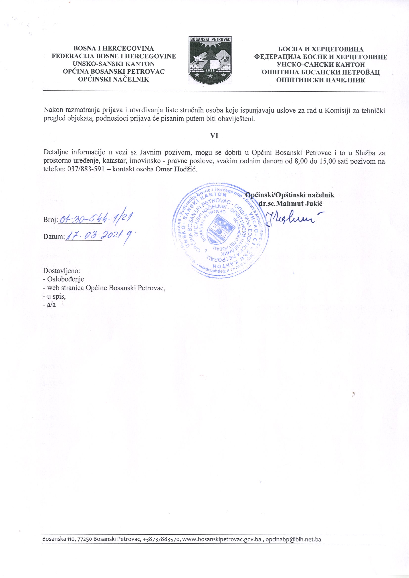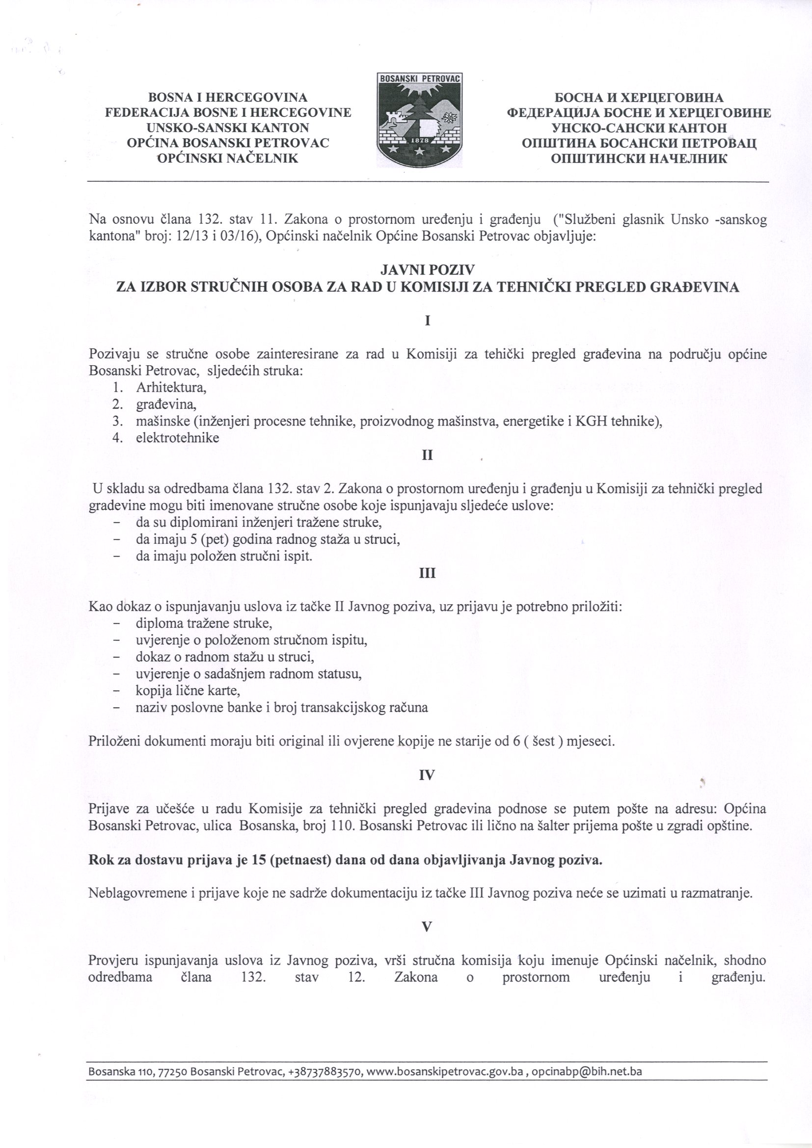 Javni poziv za izbor stručnih osoba za rad u Komisiji za tehnički pregled građevina