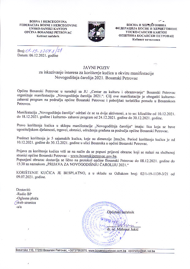 Javni poziv za korištenje kućica tokom manifestacije "Novogodišnja čarolija"
