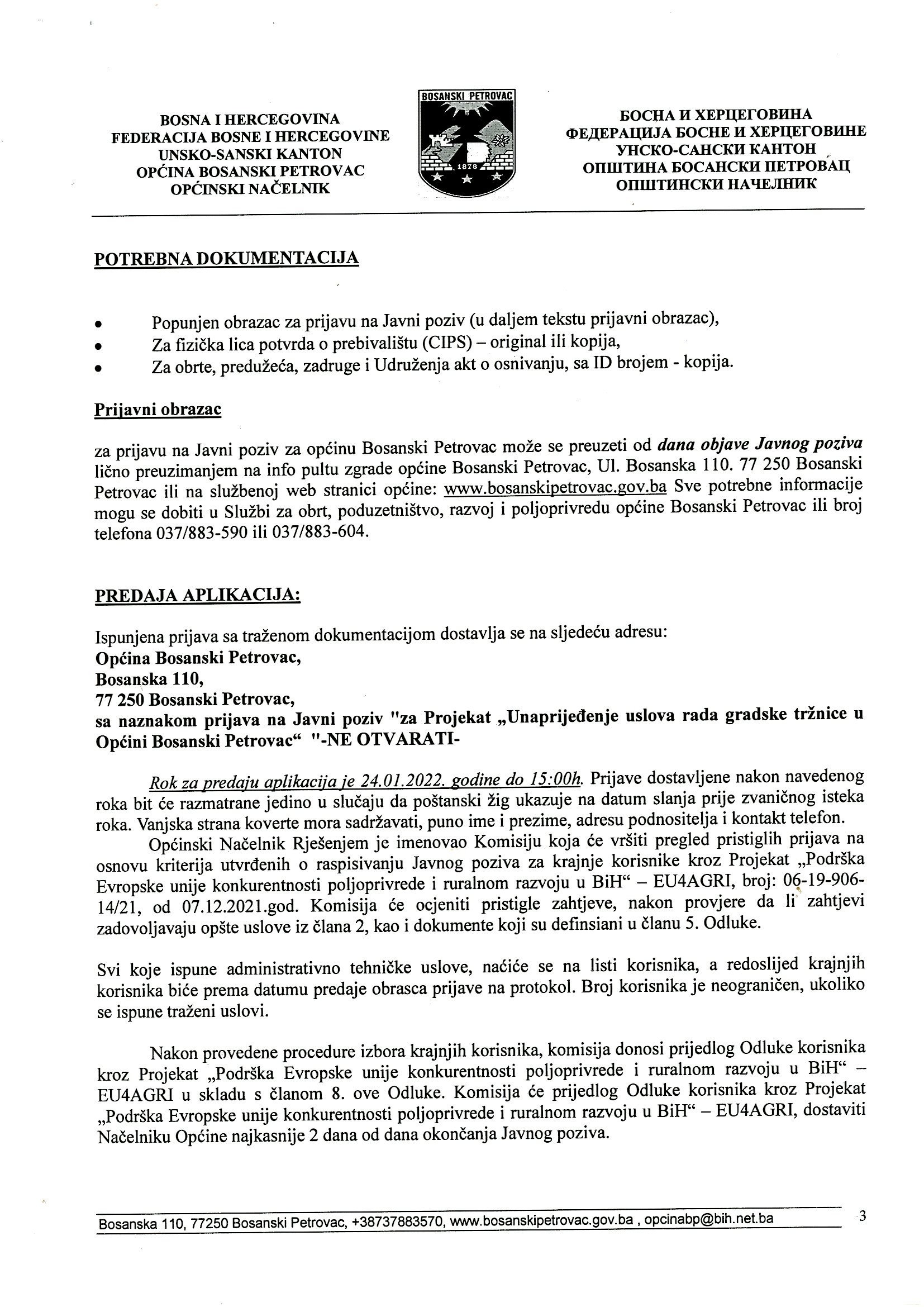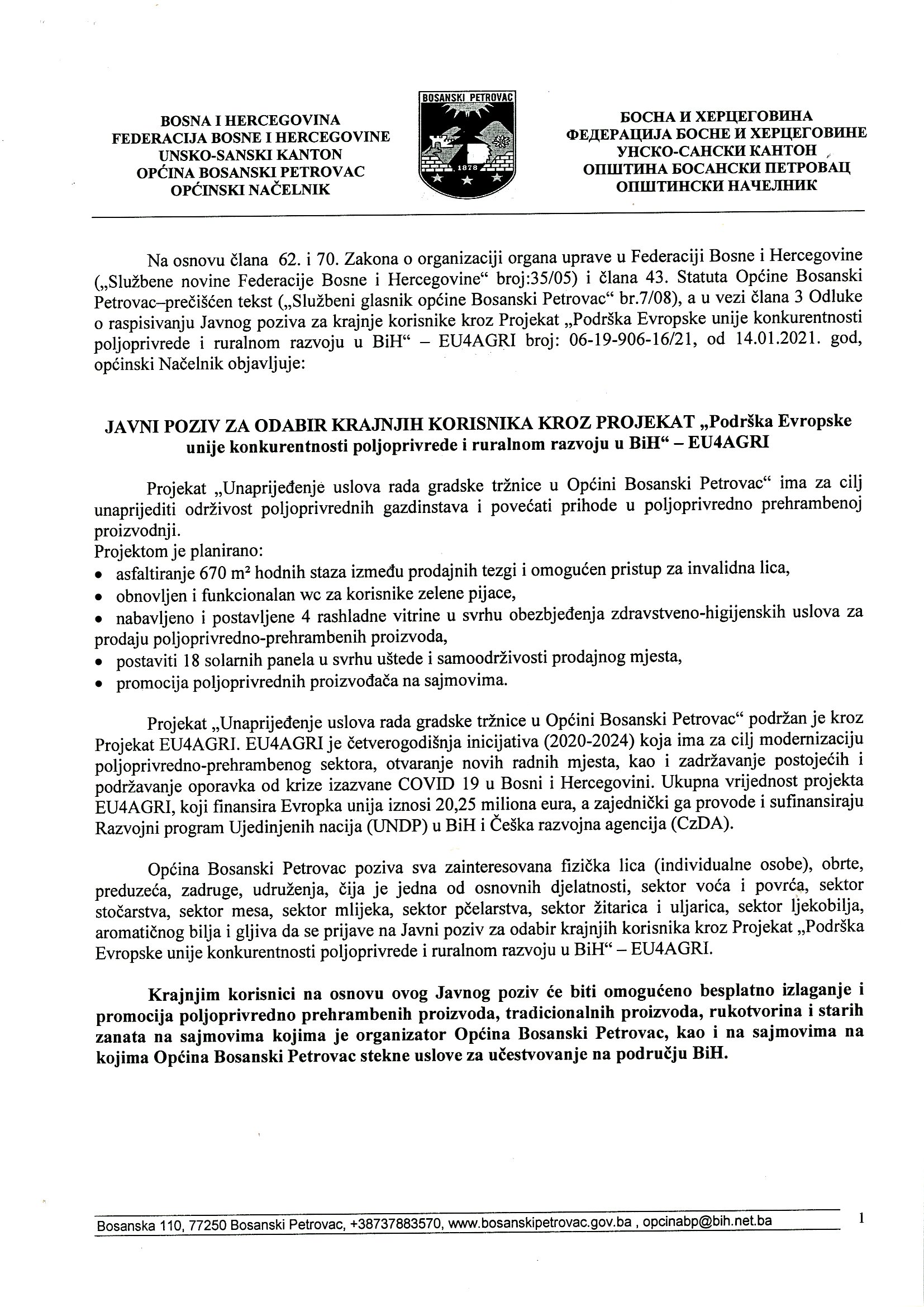 Javni poziv za odabir krajnjih korisnika kroz projekat - EU4AGRI