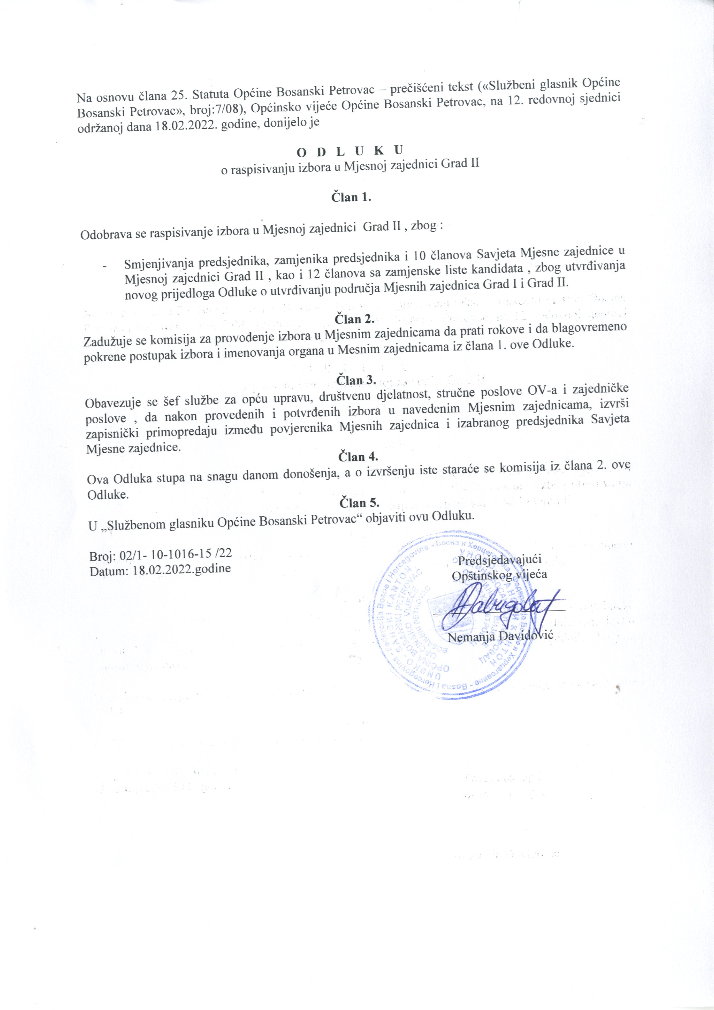 Raspisivanje izbora za članove savjeta MZ Grad II
