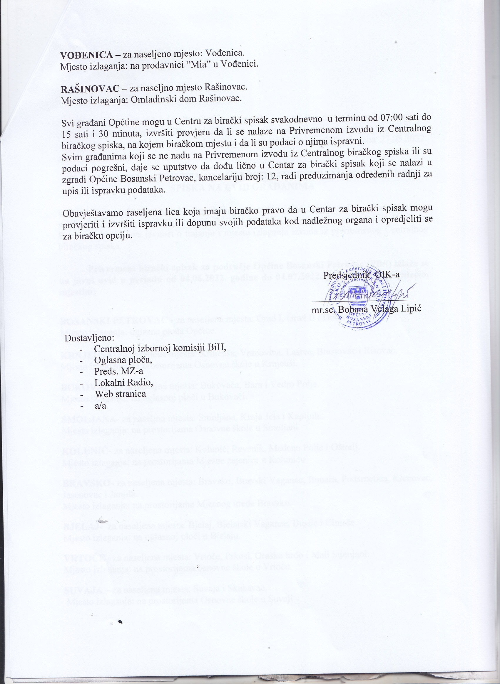 Plan izlaganja privremenog izvoda iz centralnog biračkog spiska na uvid građanima