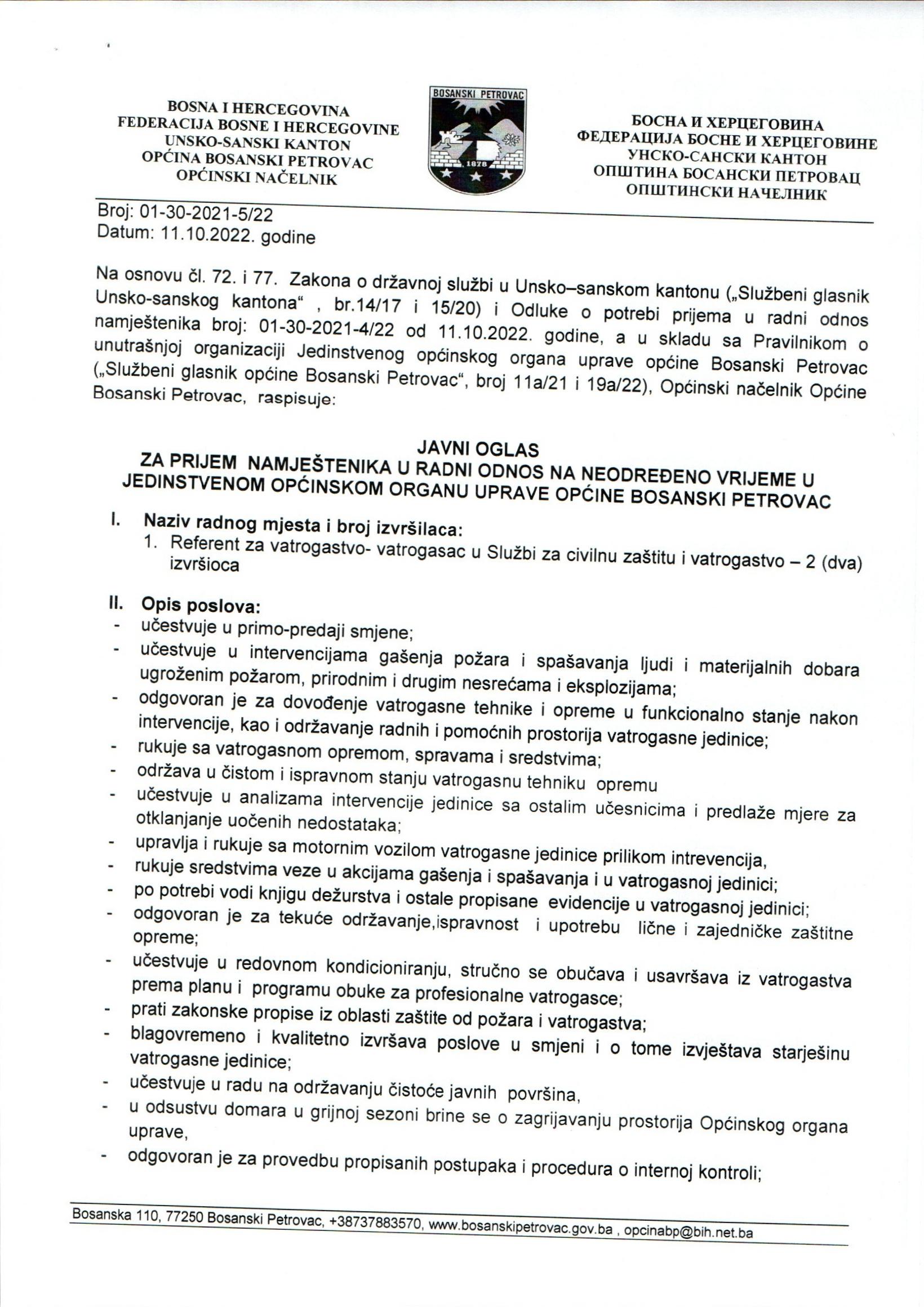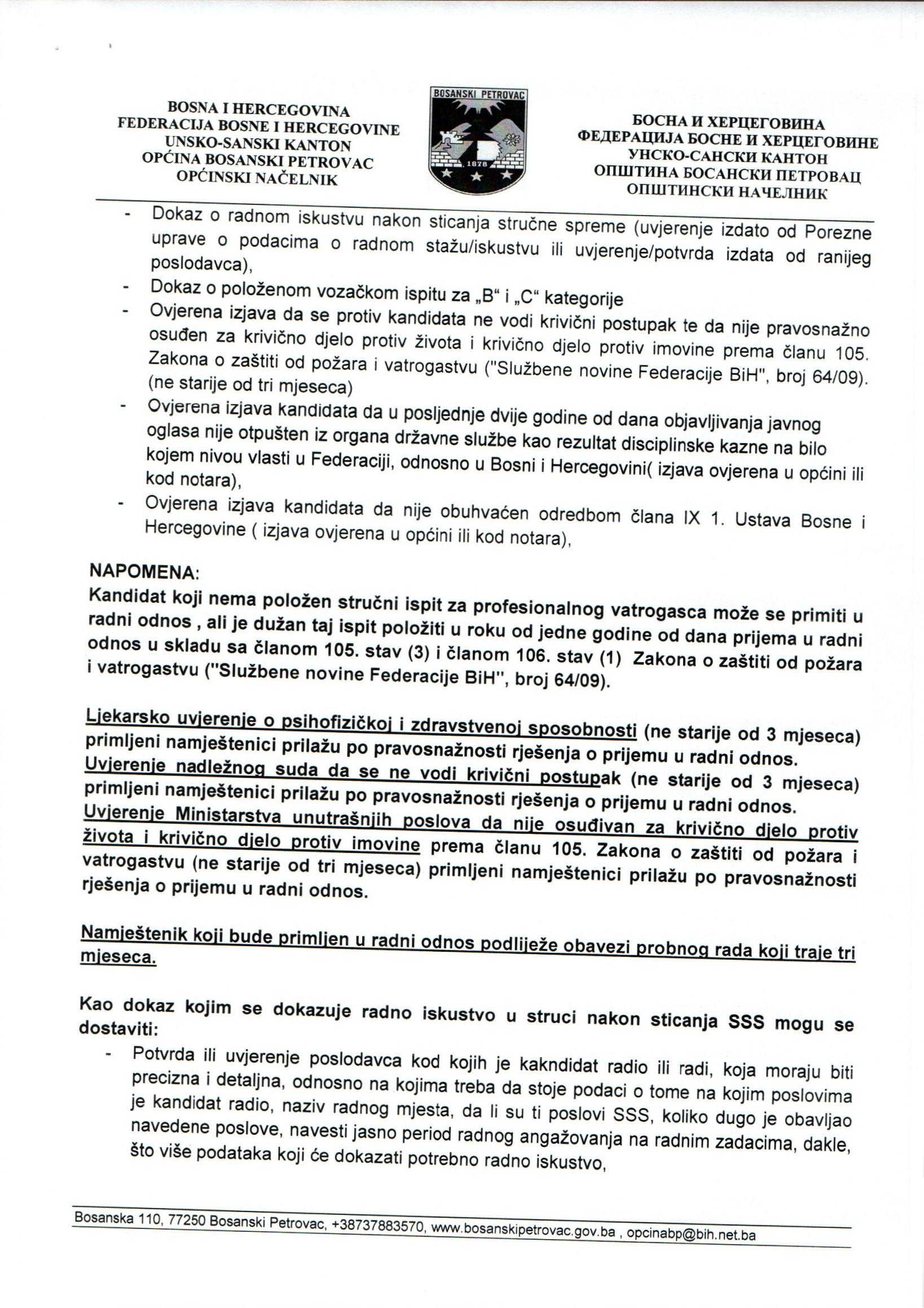 JAVNI OGLAS ZA PRIJEM NAMJEŠTENIKA