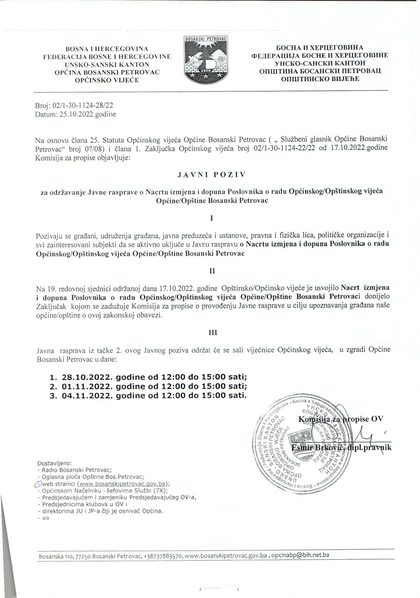 javni poziv za održavanje Javne rasprave