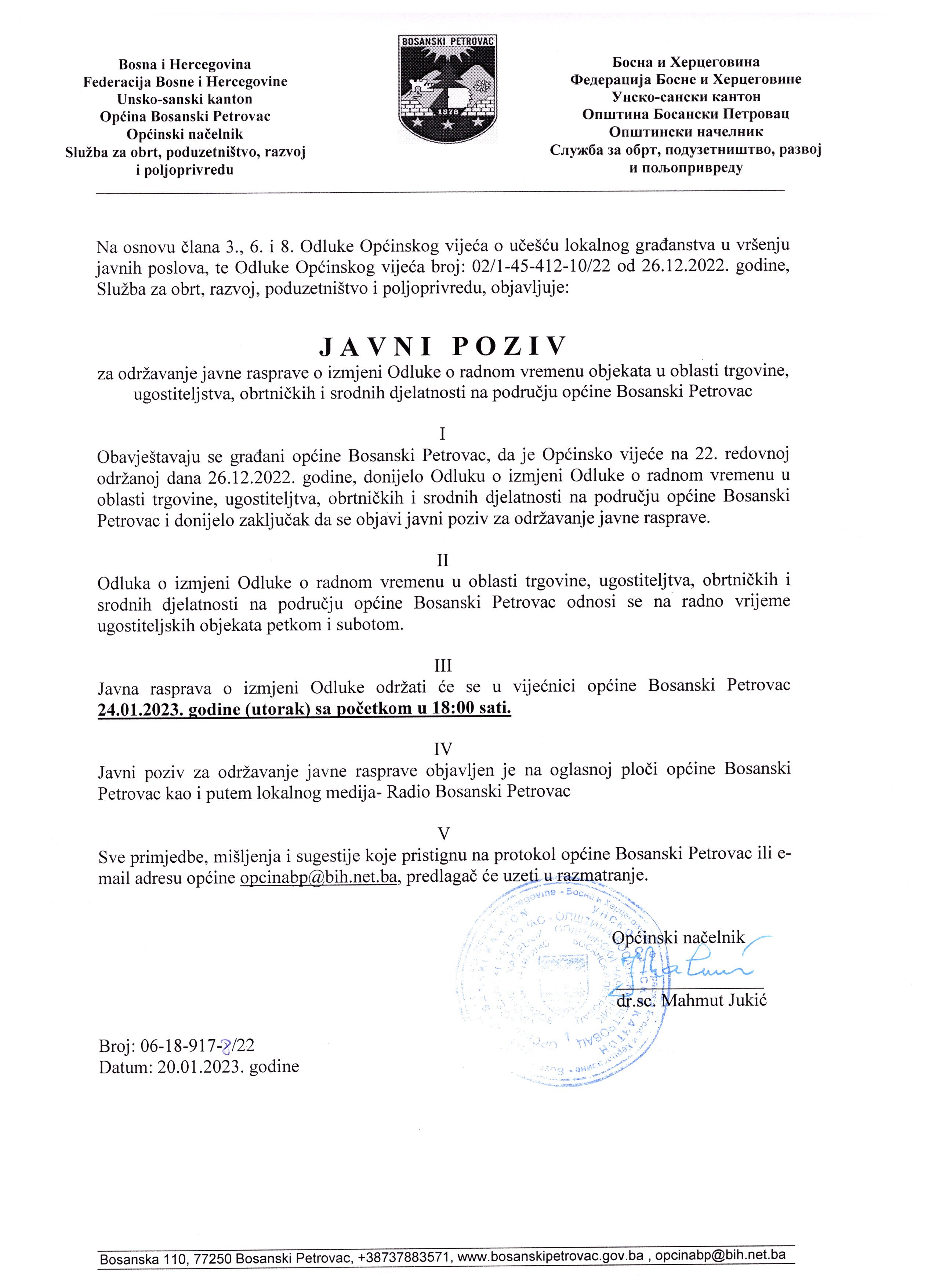 Javna rasprava o radnom vremenu u oblasti trgovine, ugostiteljstva, obrtničkih i srodnih djelatnosti