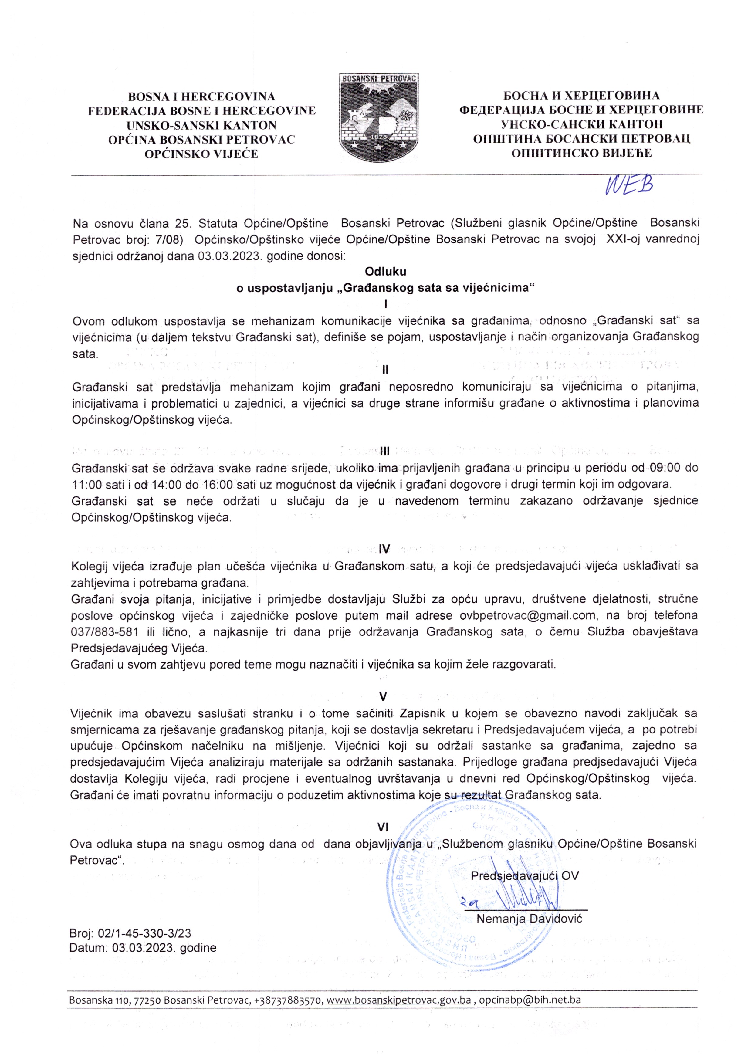 Odluka o uspostavljanju "Građanskog sata sa vijećnicima"