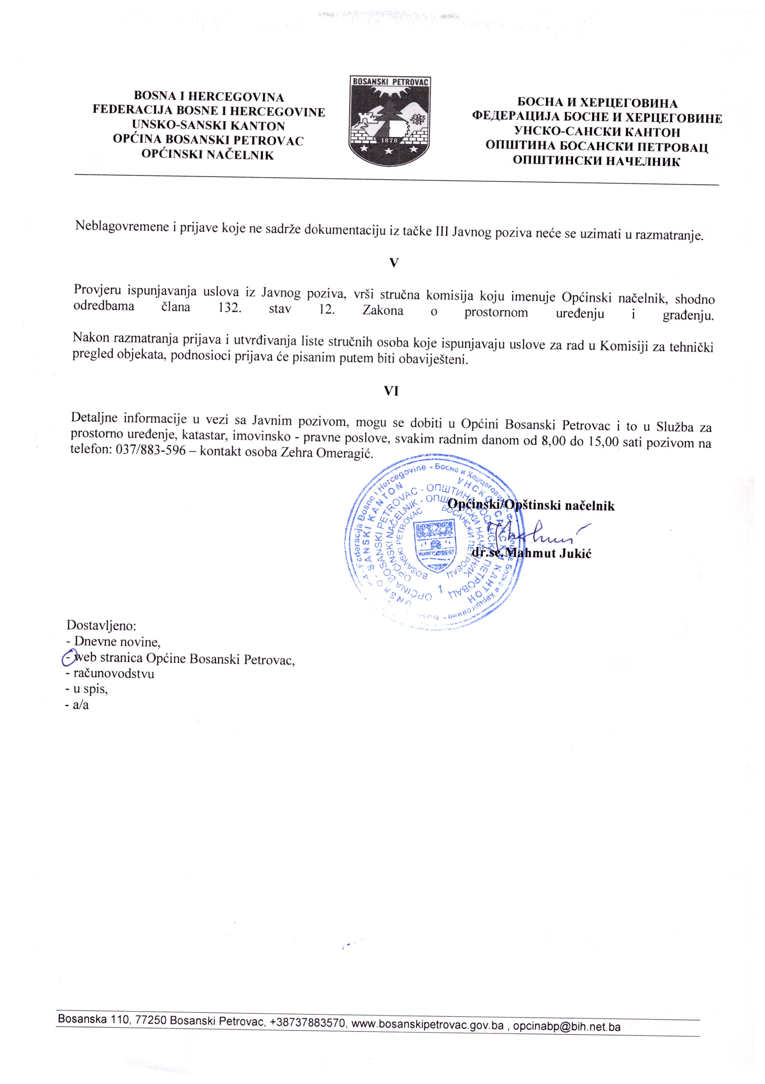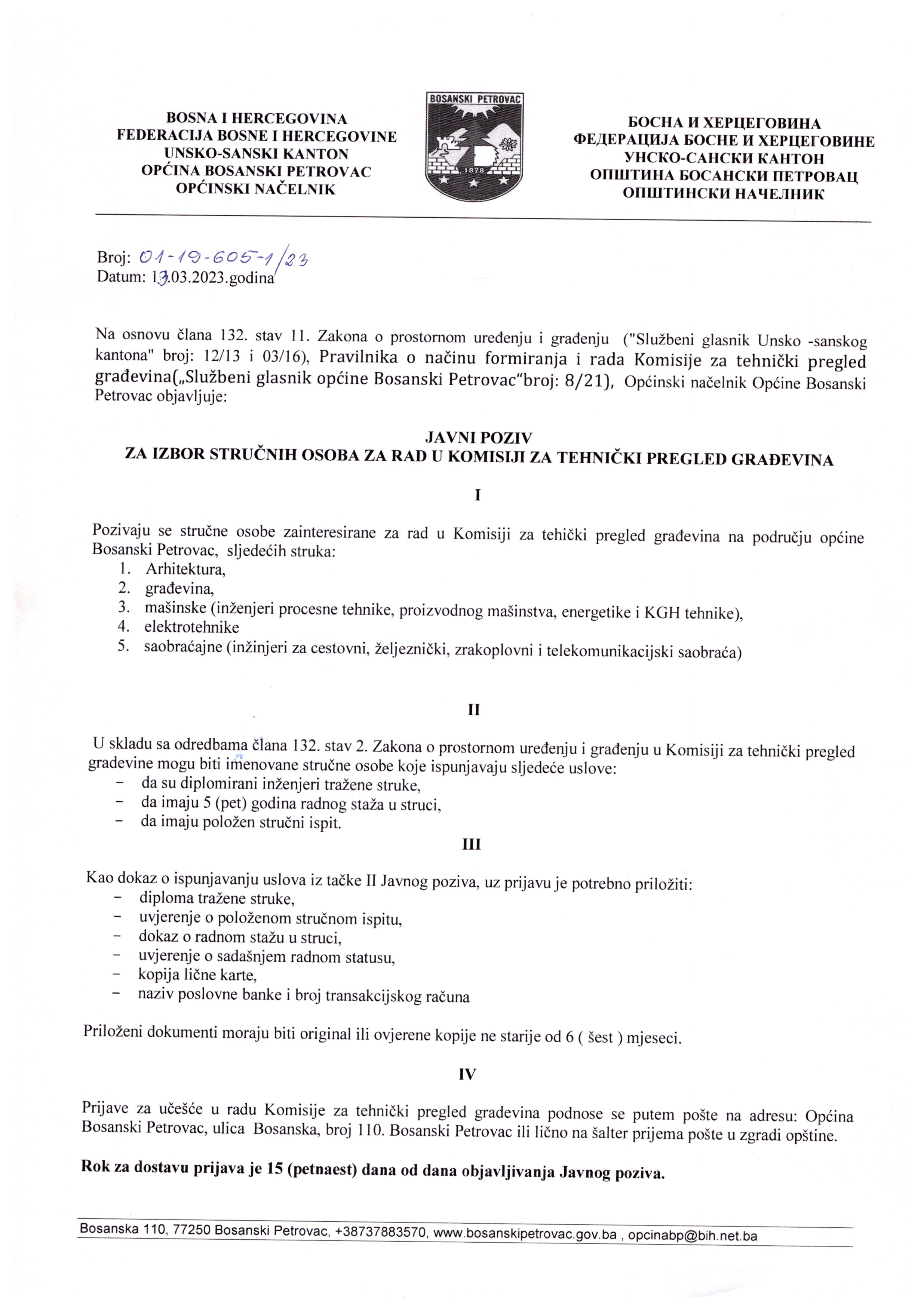 JAVNI POZIV ZA IZBOR STRUČNIH OSOBA ZA RAD U KOMISIJI ZA TEHNIČKI PREGLED GRAĐEVINA