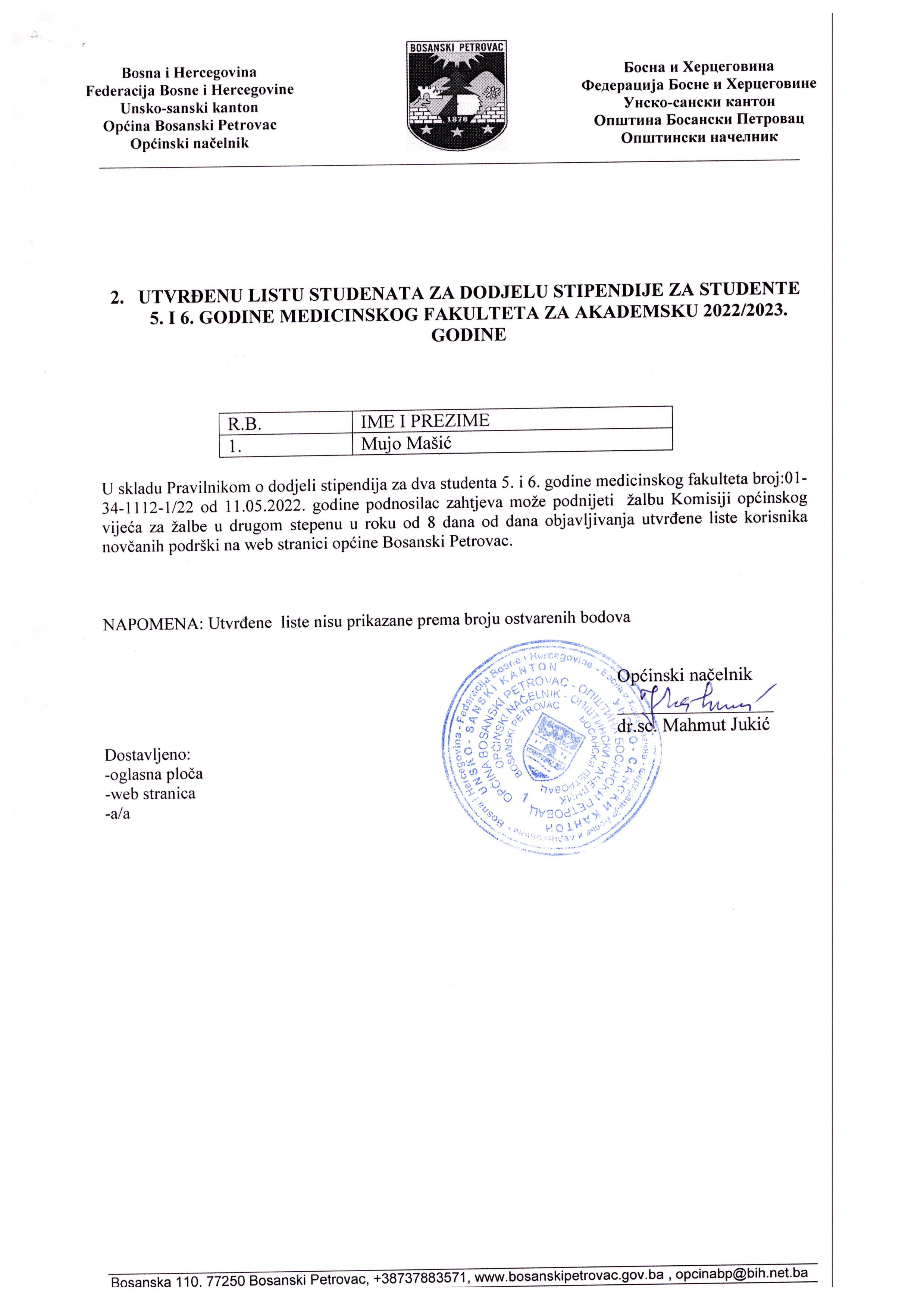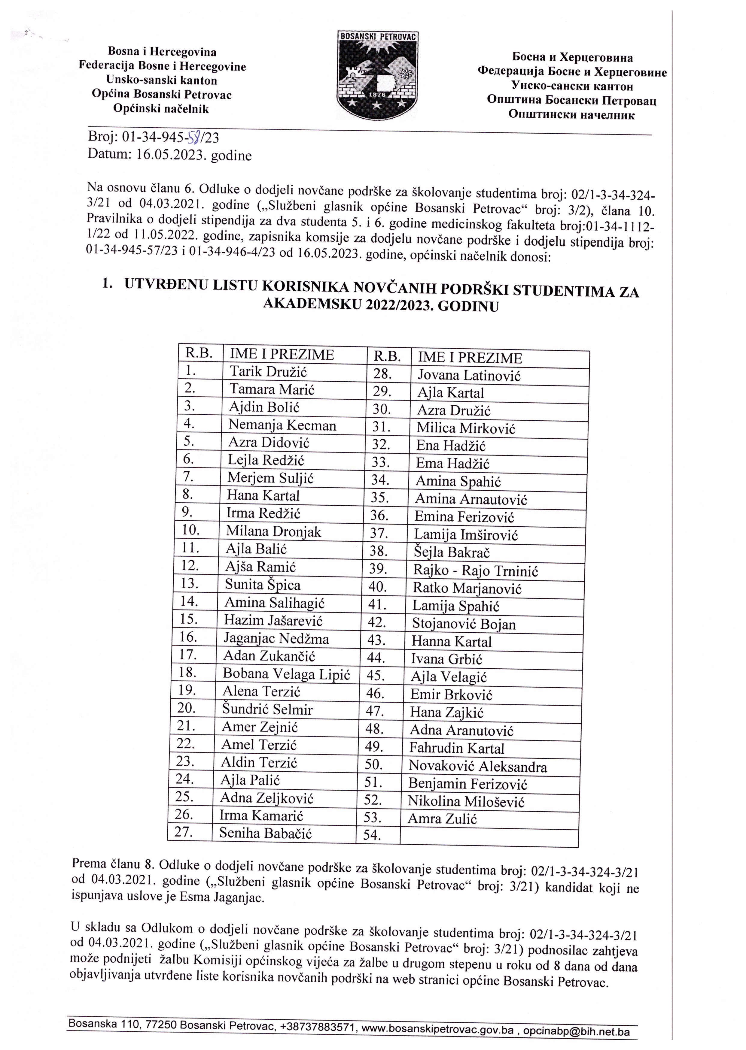 Utvrđena lista korisnika novčanih podrški i stipendija