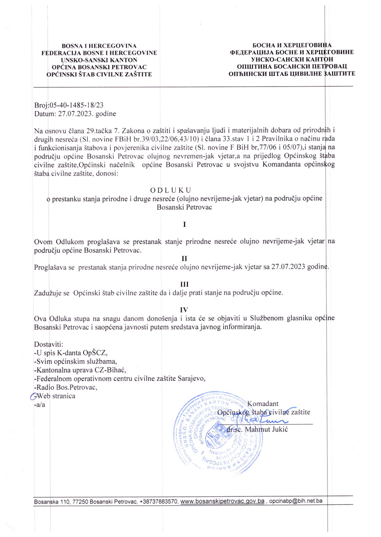 Odluka o prestanku stanja prirodne i druge nesreće