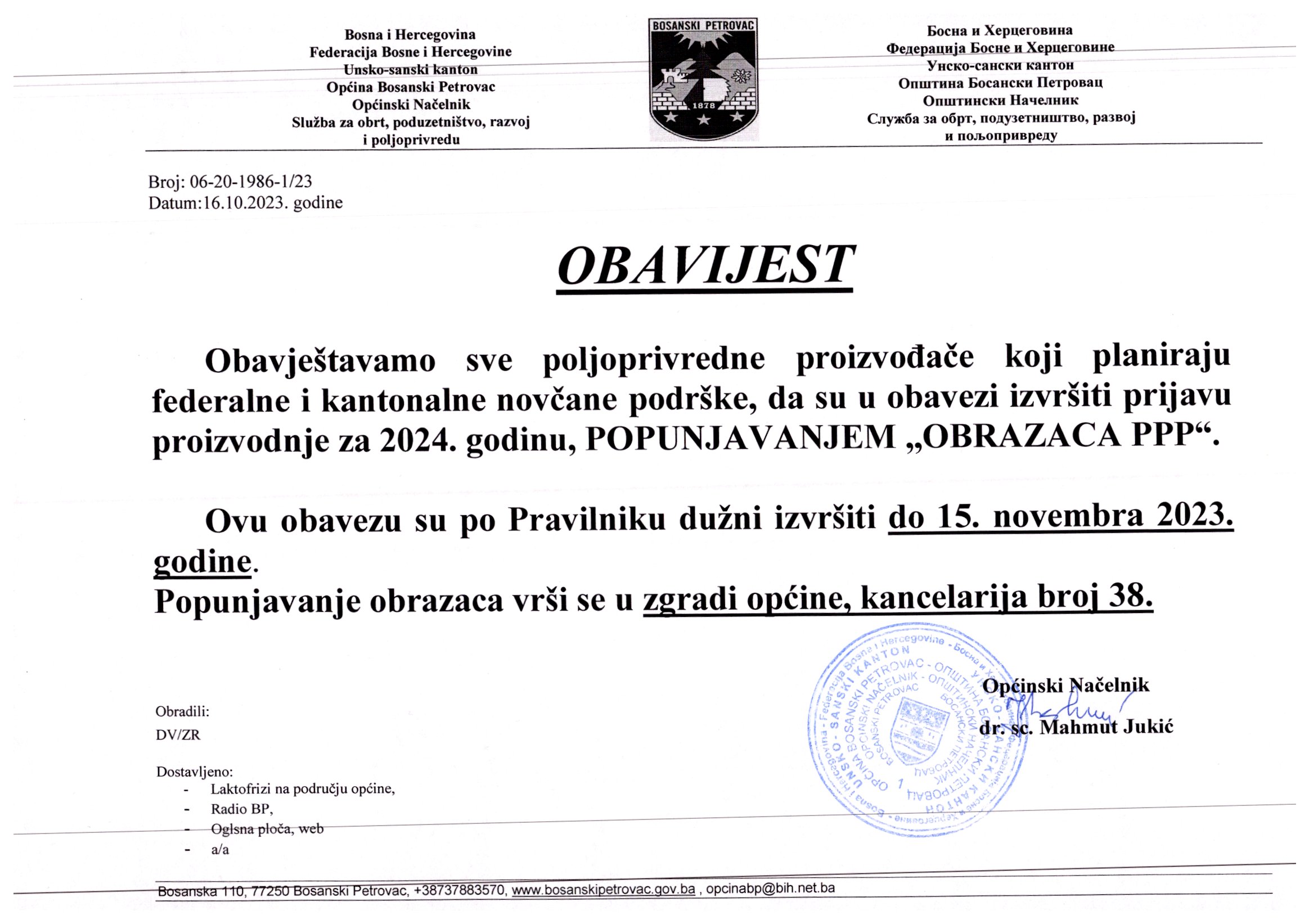 Obavijest za poljoprivredne proizvođače
