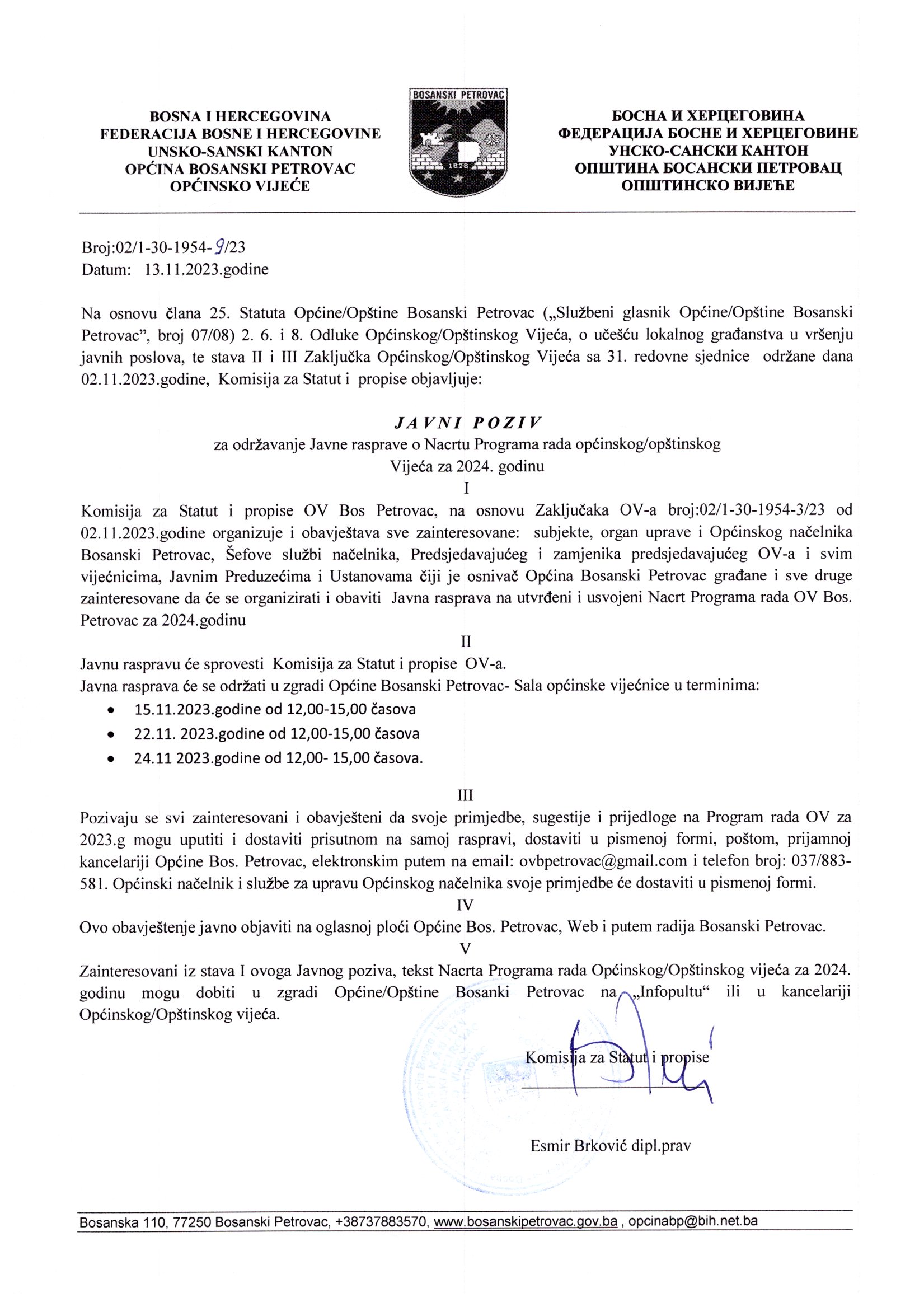 Javna rasprava o programu rada Općinskog vijeća