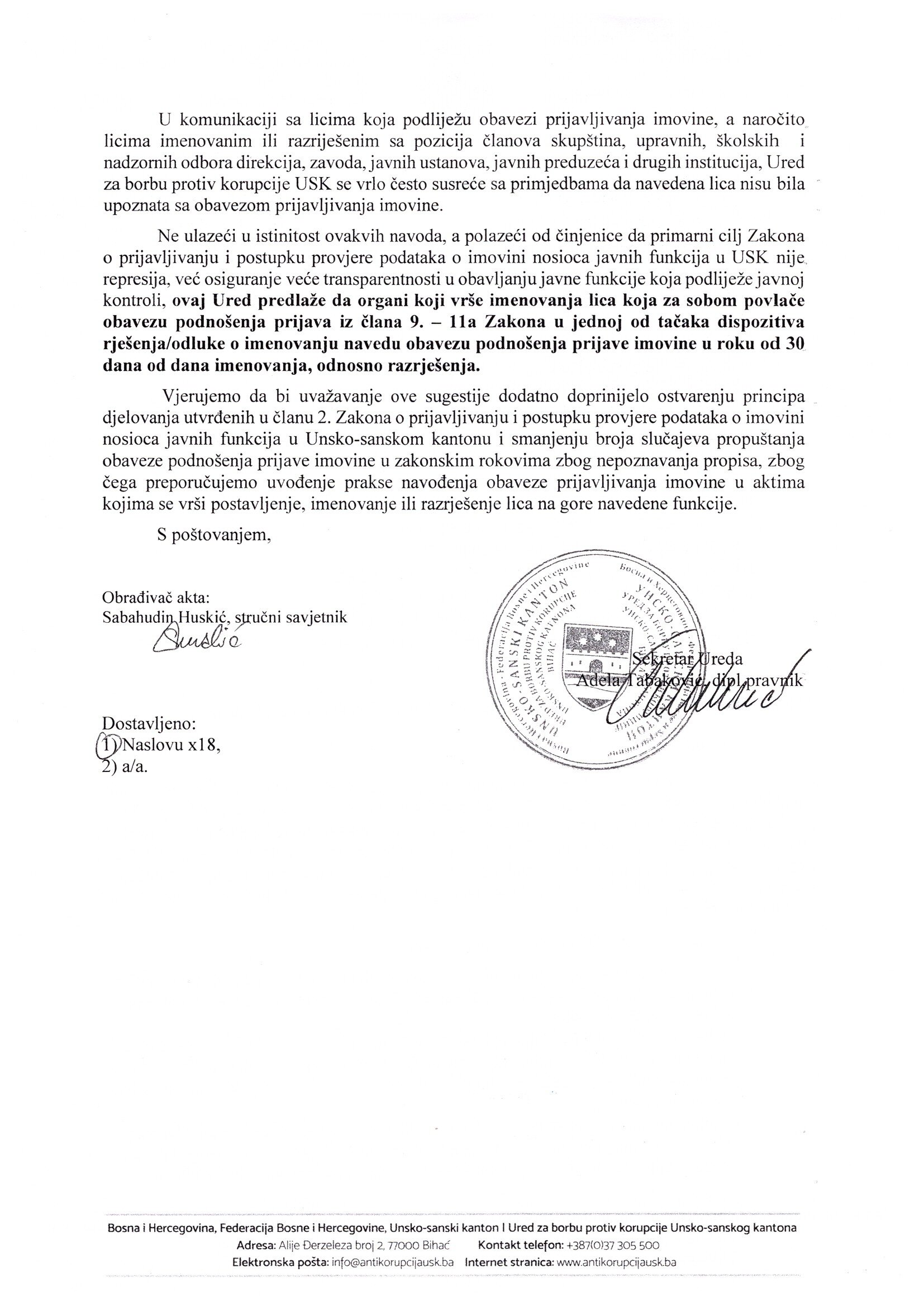 Prijavljivanje imovine nosioca javnih funkcija u Unsko-sanskom kantonu