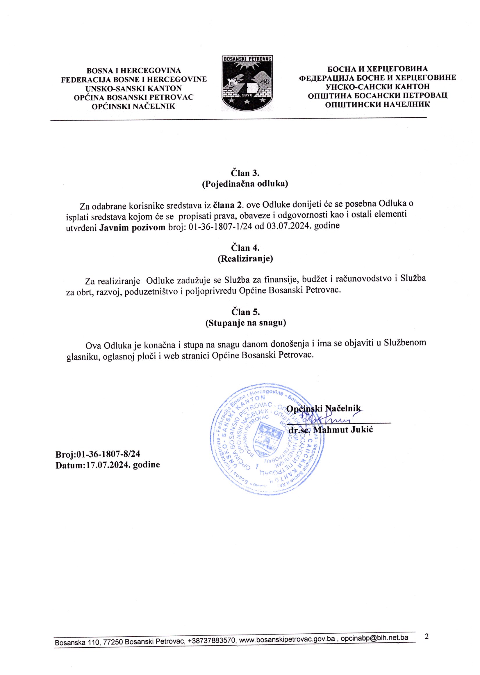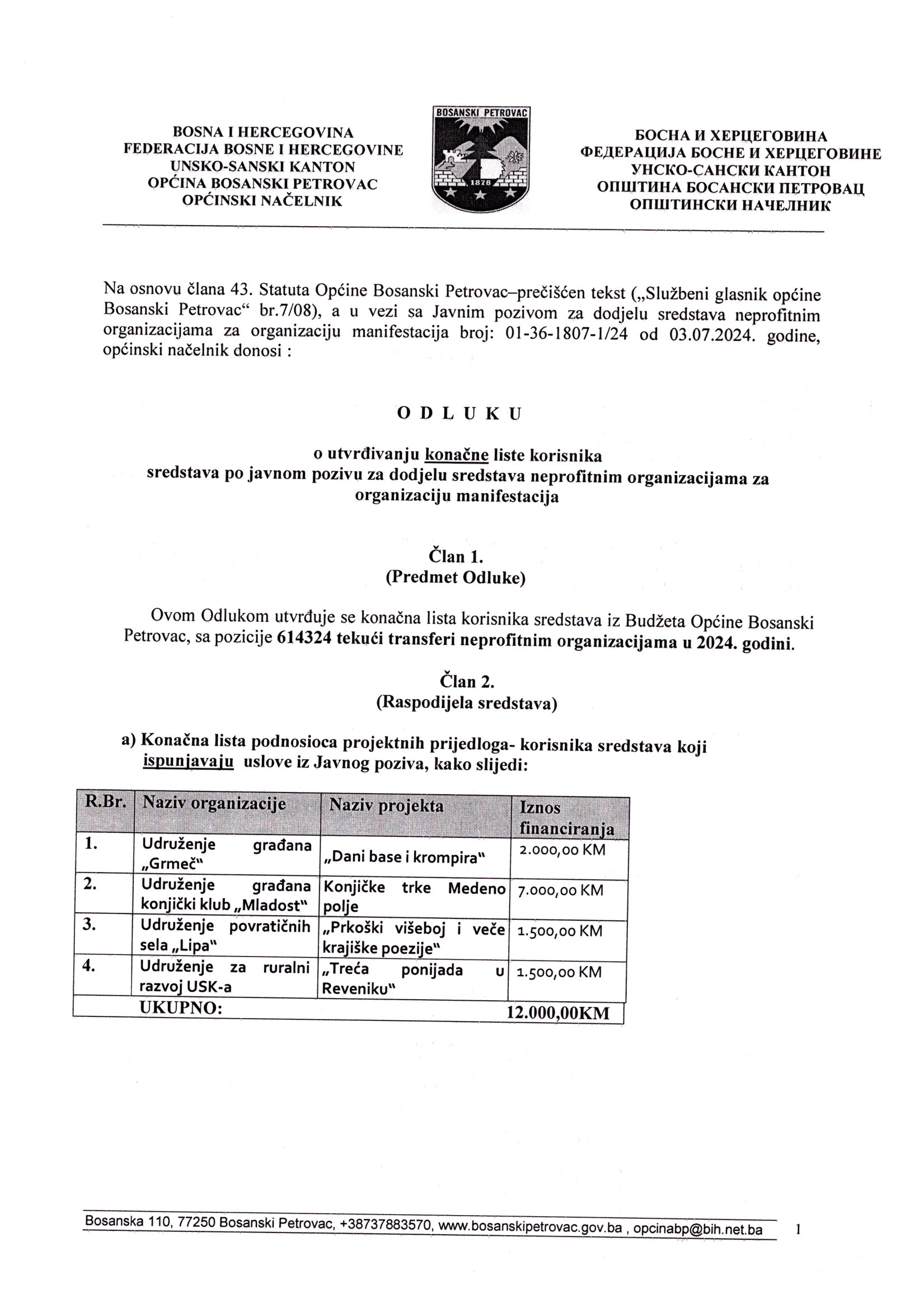 ODLUKA o utvrđivanju konačne liste korisnika sredstava po javnom pozivu za dodjelu sredstava neprofitnim organizacijama za organizaciju manifestacija