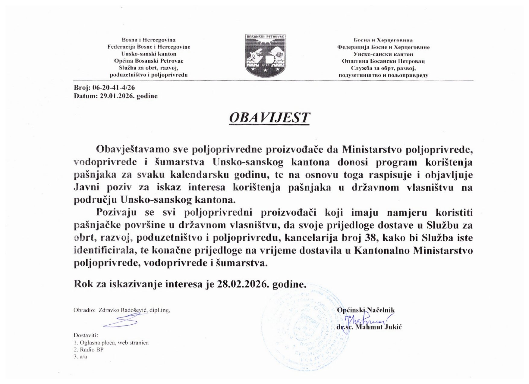 Obavijest za poljoprivredne proizvođače