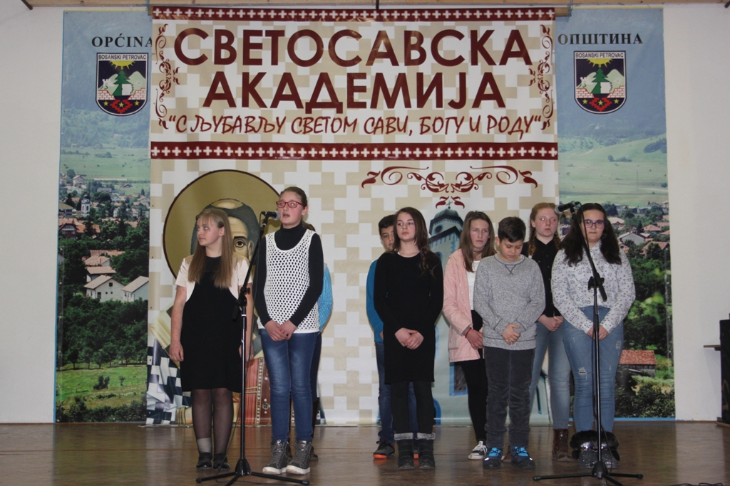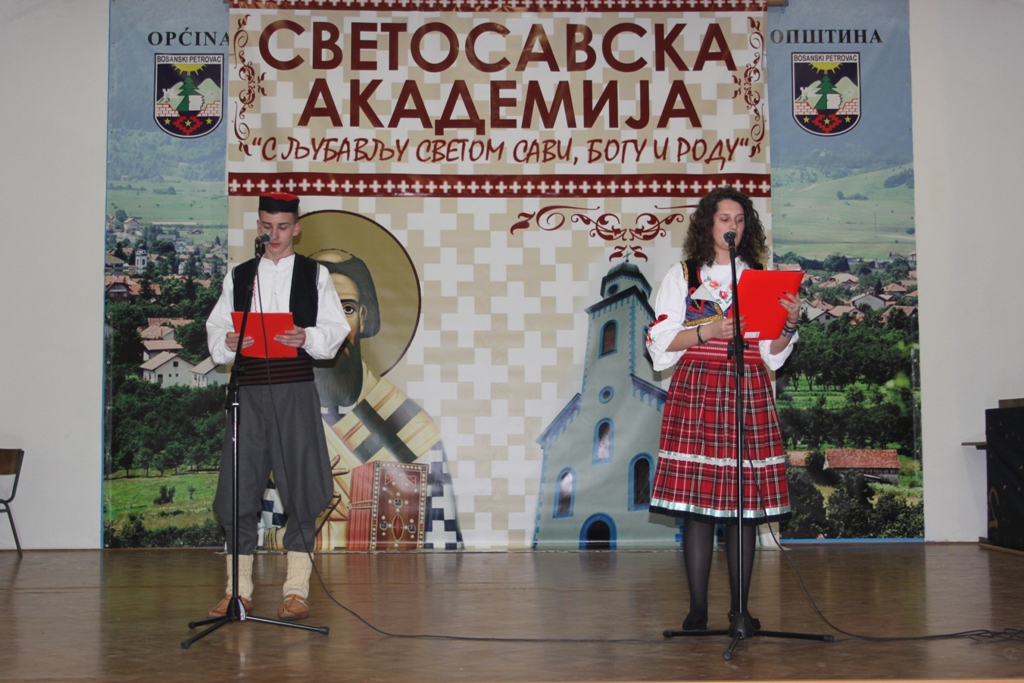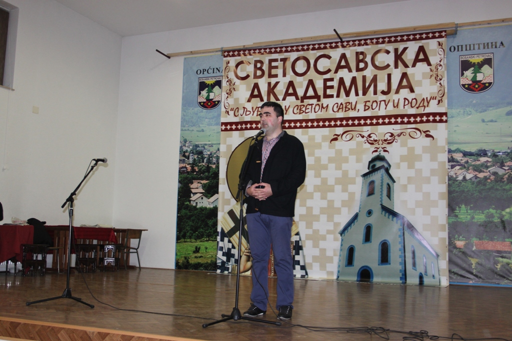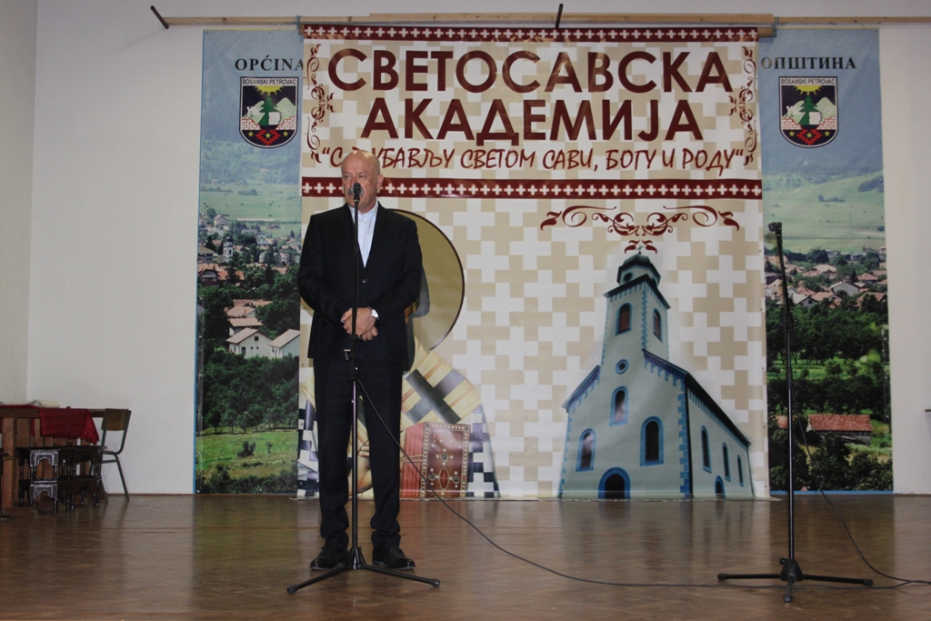 Na početku svečanosti prisutnima se obratio profesor pravoslavne vjeronauke, Predrag Vujić, koji je uputio dobrodošlicu, te je kratko predstavio program koji slijedi. Istakao je da su Svetosavsku akademiju pripremili učenici Mješovite srednje škole “Bosanski Petrovac” i osnovne škole “Ahmet Hromadžić”, te da je sama Akademija nastala kao plod želje i entuzijazma učenika i njihovih vjeroučitelja da svoju ljubav prema vjeri i prema zajedništvu pretoče u stihove, recital, besjedu, pjesmu i igru.