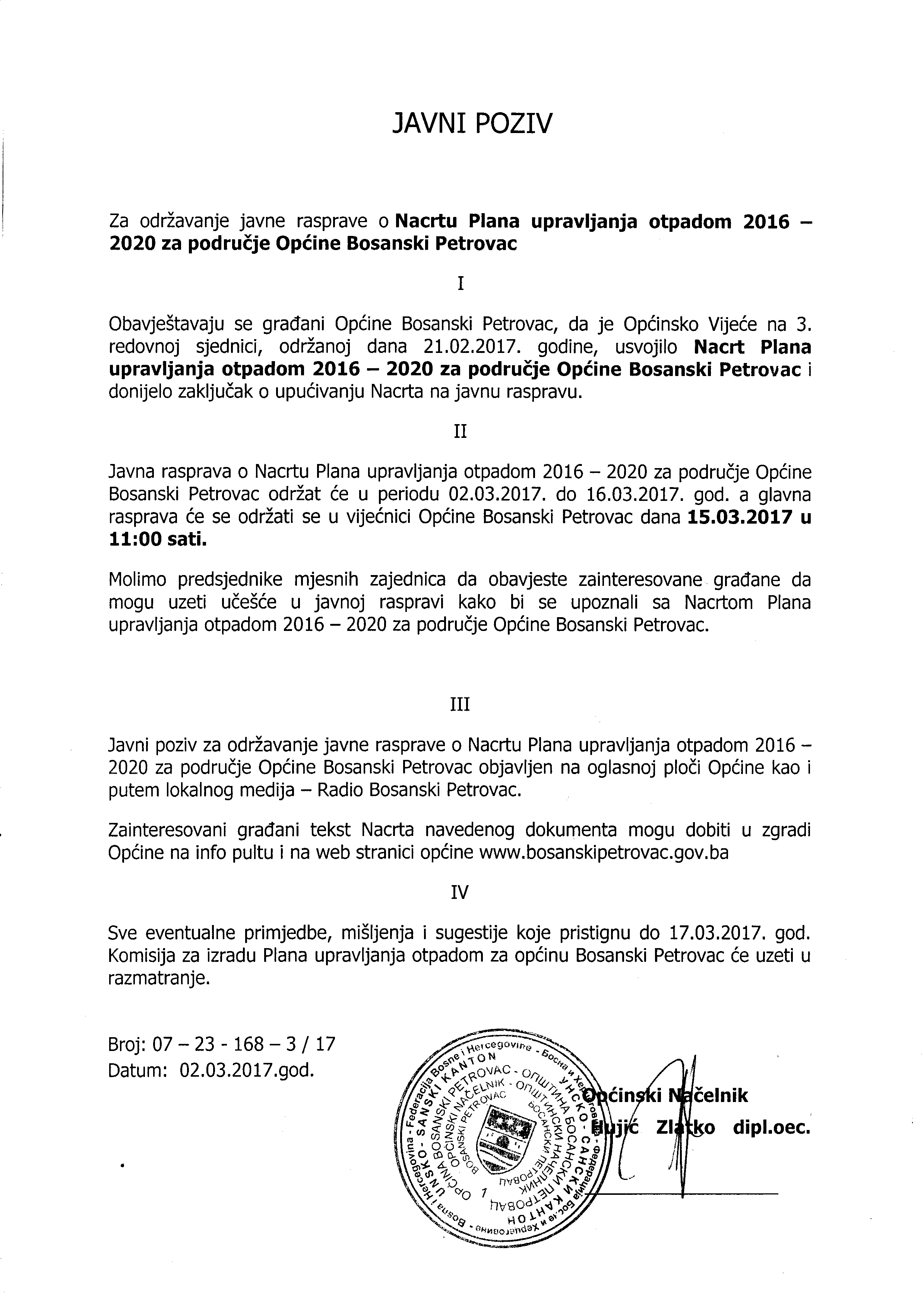 Javne rasprave, Plan upravljanja otpadom i Prostorni plan općine
