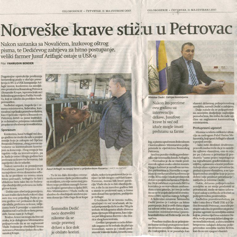 Članak: Oslobođenje 11.05.2017.