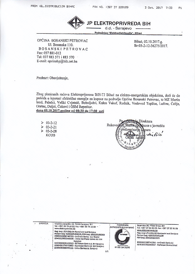 OBAVJEŠTENJE
