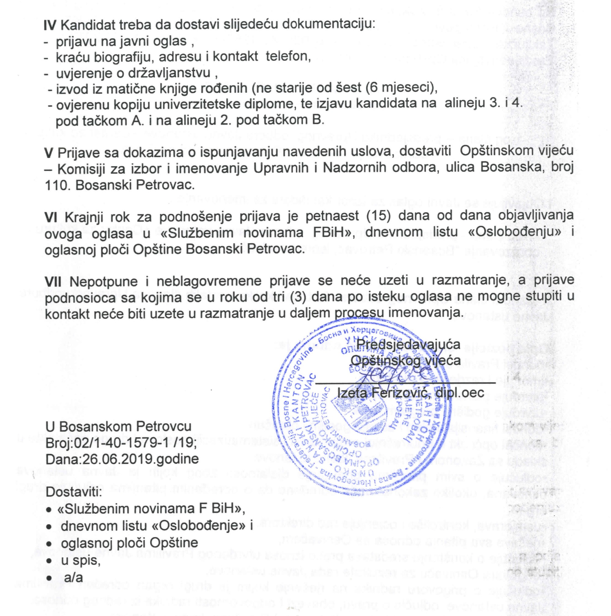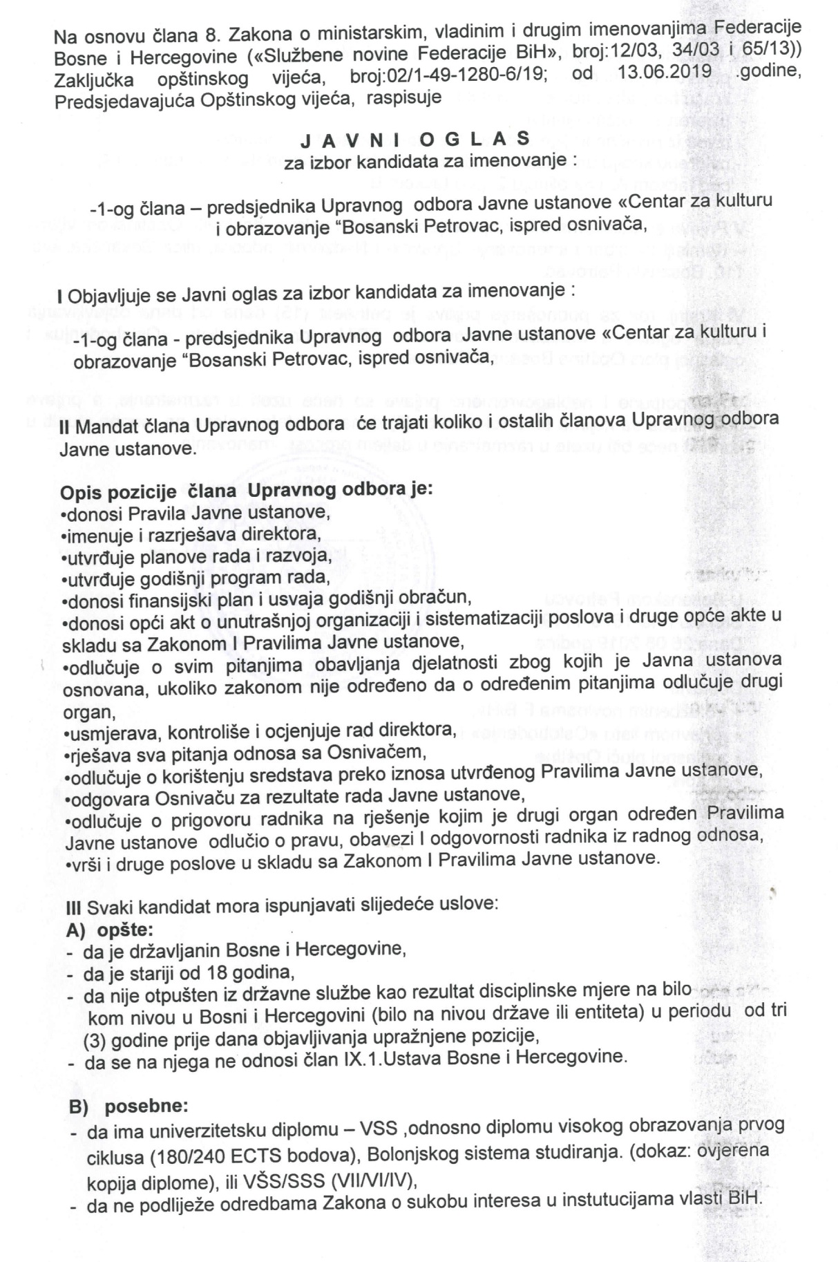 Javni oglas za izbor kandidata za imenovanje člana upravnog odbora