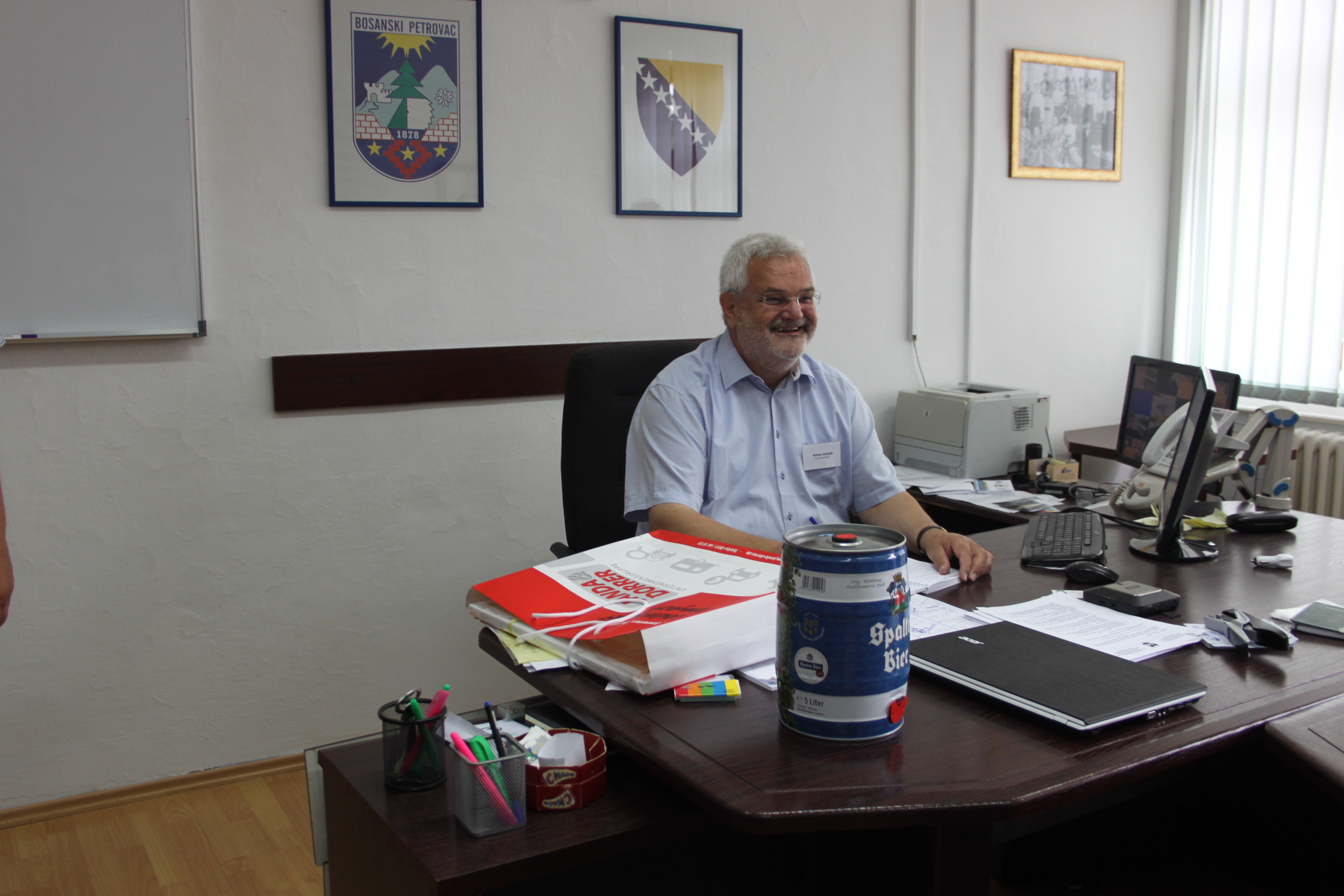 U subotu su u posjeti našoj Općini boravili gosti iz Njemačke, tačnije grada Kammerstein, koji su izrazili želju da se upoznaju sa našim vjersim zajednicama i objektima. Na čelu delegacije iz Njemačke je bio gradonačelnik Walter. Na samom početku posjete, u kabinetu načelnika Općine su uručeni prigodni pogoni od gostiju i od domaćina. Načelnik Općine gospodin Dejan Prošić se zahvalio gostima na dolasku, te izrazio želju da u budućnosti bude intenzivnija suradnja između ove dvije Općine. Nakon toga smo naše goste upoznali sa našim gradom, tom prilikom su posjetili gradsku Džamiju i Pravoslavnu crkvu, te uži centar grada, nakon toga su se uputili na neformalno druženje i doručak u Etno selo „Čardaklije“.