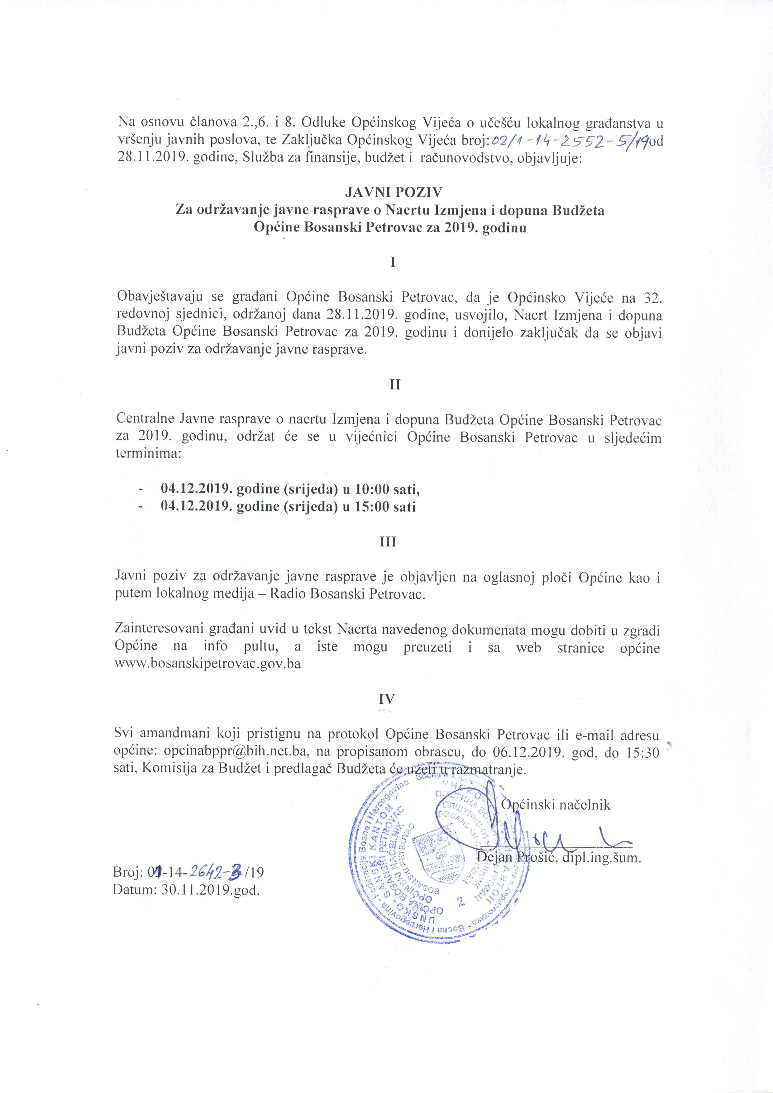 Javne rasprave Rebalans Budžeta Općine za 2019. godinu